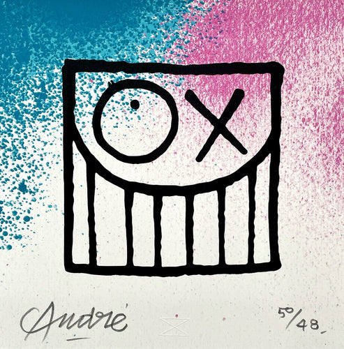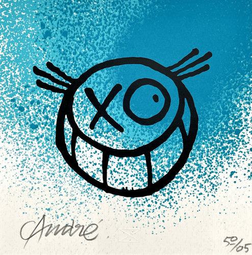Unlike the past 20 years of street graffiti, where a street artist imposes an anonymous tag for an anonymous crowd — some merely staining a depressing urban landscape, a few becoming famous gallery artists, such as Keith Haring, Kenny Scharf, KAWS, Neckface, and of course Samo — André has hesitated to go from the street into the galleries. Rather he’s given a new sense to his graffiti art, first, by by-passing the walls of the gallery and introducing his imagery into clubs or night spots, which he participates in opening and promoting all over the participates in opening and promoting all over the world. In doing so In doing so he has proactively changed the nightlife of cities such as Paris, New York, and Tokyo. He also reinterprets the meaning of graffiti art, from underground opposition to a more friendly and utopian alternative to the day time. André is one of those rare people who is able to make things happen naturally. His genuine generosity extends into the romantic utopian nightspots he creates, and where people meet.