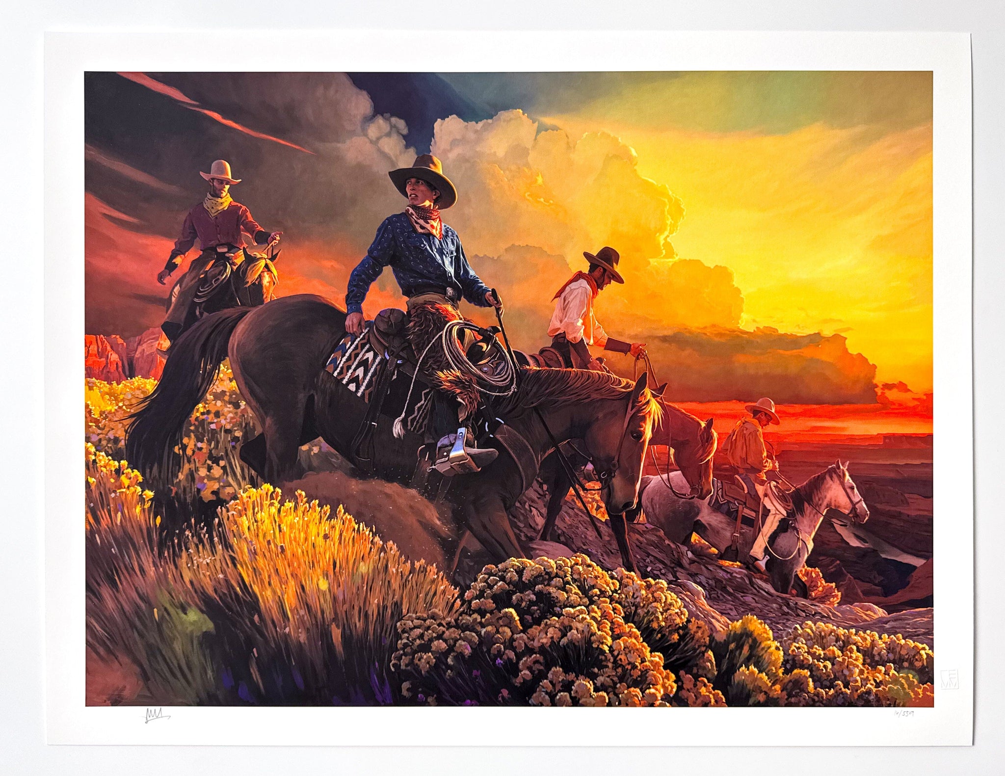 His work brought many new opportunities, including important solo and group shows, and a significant showing at the 2017Night of Artists at the Briscoe Western Art Museum, where he won the Sam Houston award. He also began to expand more artistically: he started to work more in plein air, he spent time on ranches with cowboys and on horseback to acquaint himself more with the Western way of life. He spent time in New Mexico, Arizona and Wyoming and began adding additional figures to his works and new kinds of compositions to his growing arsenal.