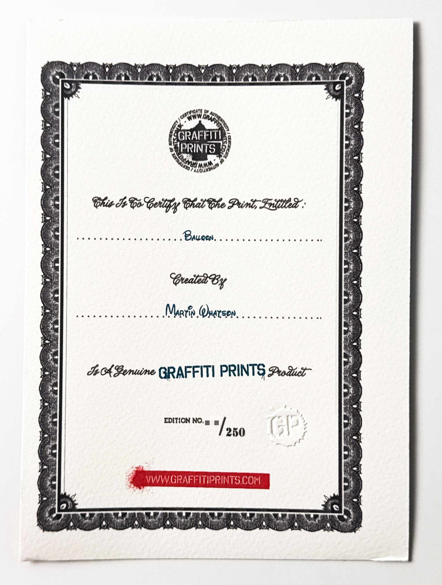 Provenance: Hand-signed and numbered by artist with Graffiti Prints. Comes with original Graffiti Prints Certificate of Authenticity.