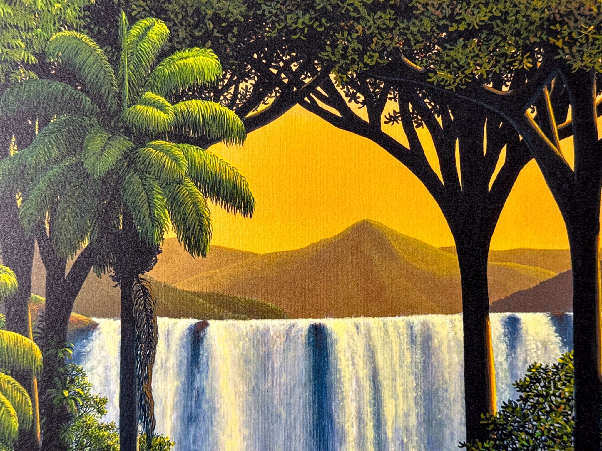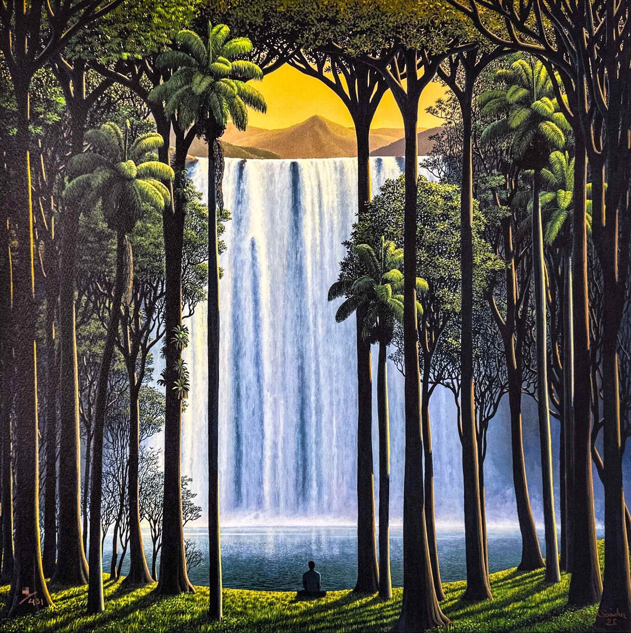 Sánchez’s symbolic landscapes have made him one of the most important living Cuban artists. Part of Volumen Uno in the 80s, a movement that resisted the heavily censored Cuban art of the time, he has since received international recognition, with auction prices in excess of $600,000 USD. Inspired by the Romantics, Sánchez paints the wilderness of his homeland, as well as vast panoramic views of garbage dumps. The works are incredibly detailed with a lush tropical palette, encompassing the physical wonder of the natural world, it’s immense spiritual power, and humankind's tendency to destroy it. Small human figures set against waterfalls, lagoons and palm trees engage with humankind's insignificance, search for inner peace, and broader environmental issues. Steeped in allegory, Sánchez’s art reinterprets traditional modes of painting to create an uncanny paradise that is at once hopeful and threatening.