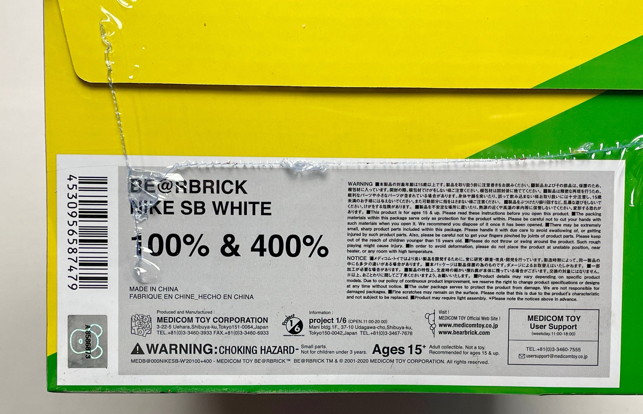 BEARBRICK Nike SB White (400% + 100%) Vinyl Figure Be@rbrick