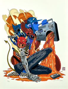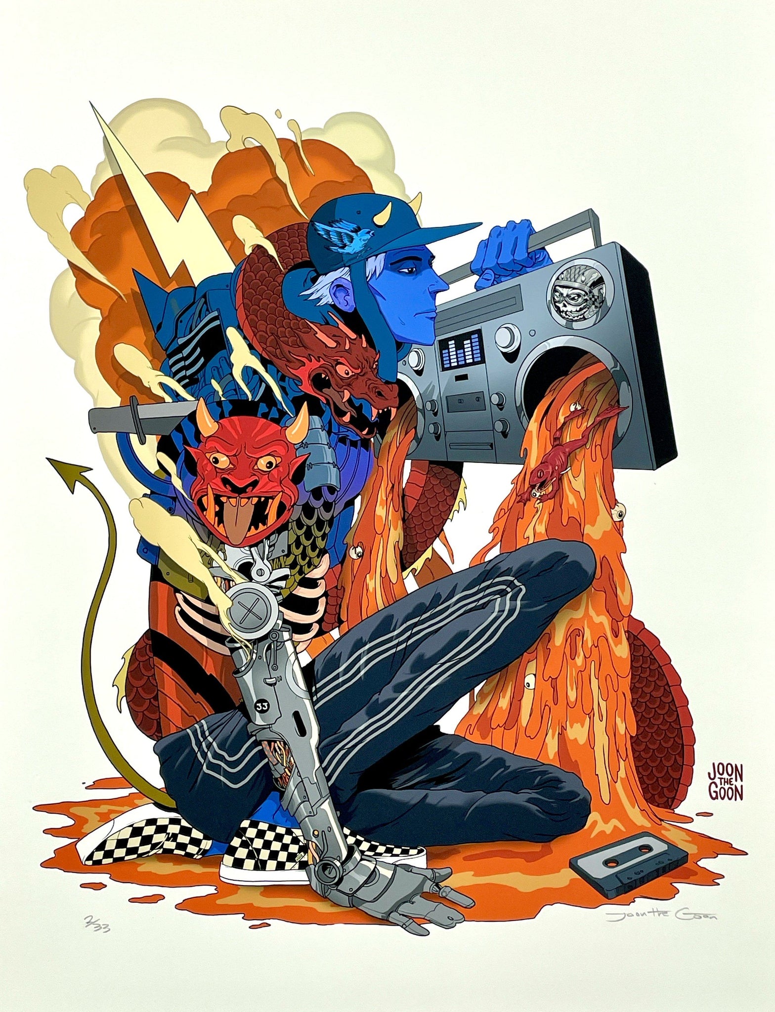 Juan “Joon” Alvarado graduated from Art Center College of Design in 2007. Since then, he has shown his collections at the Museum of Latin American Art, La Luz de Jesus, and was a featured artist (and winner) for Secret Walls and PowWow! Joon’s art reflects his upbringing in Los Angeles, and is heavily influenced by graffiti, animation, Japanese woodblock art, and comic books.