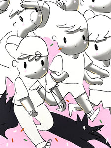 Excited to share details on the debut screen print edition from the duo Giorgiko. Based off of a drawing on paper by Trisha, the husband and wife duo then collaborated with the team at Serio Press here in LA to put together a magical screen print edition that brings to mind cherished childhood memories of chasing the much beloved ice cream man as he entered your neighborhood, playing his songs to lure you into the streets to chase after his truck.