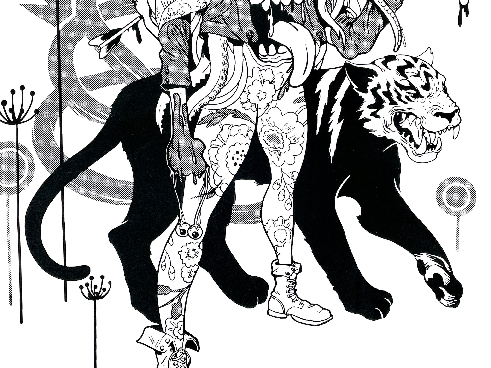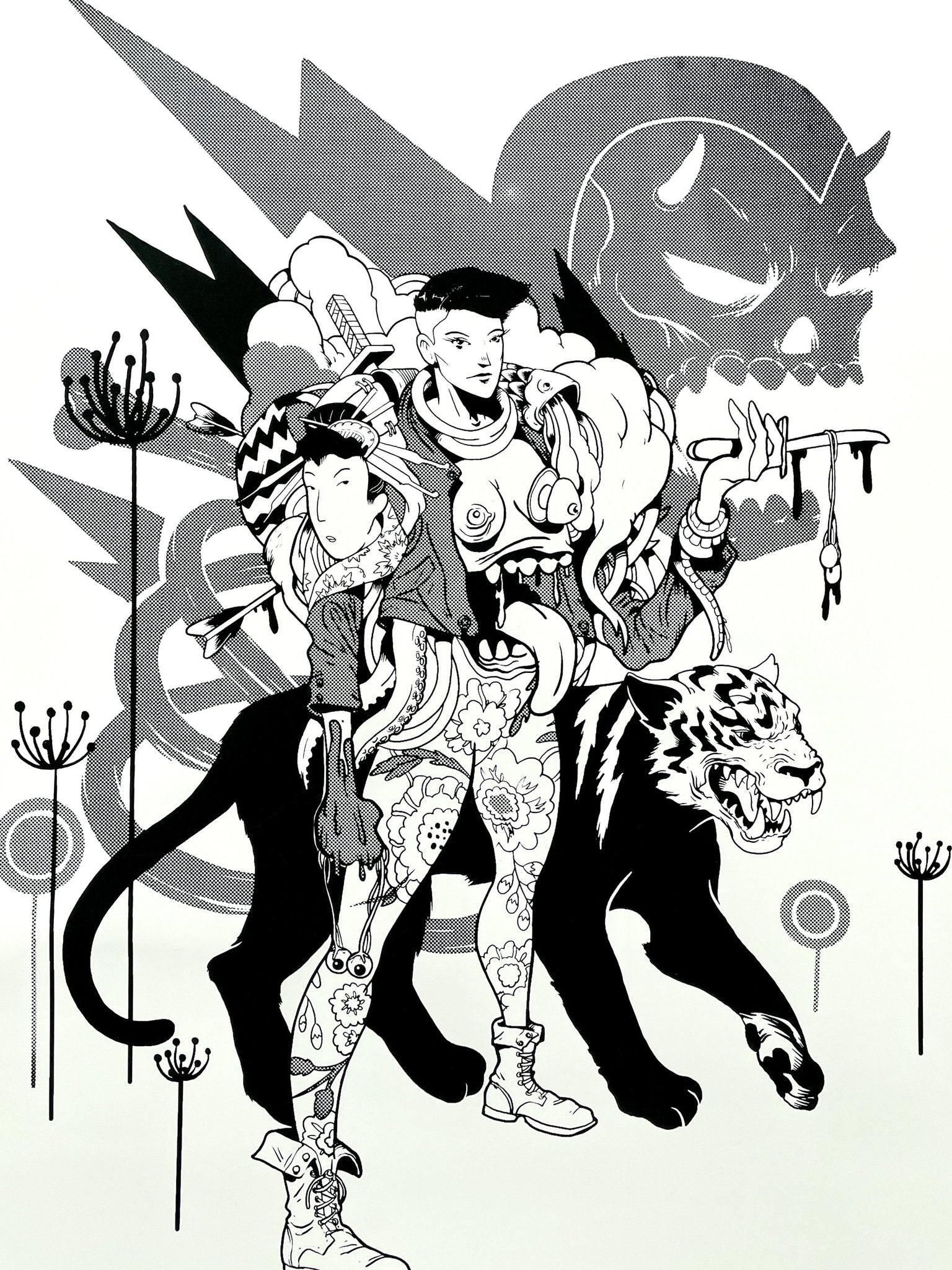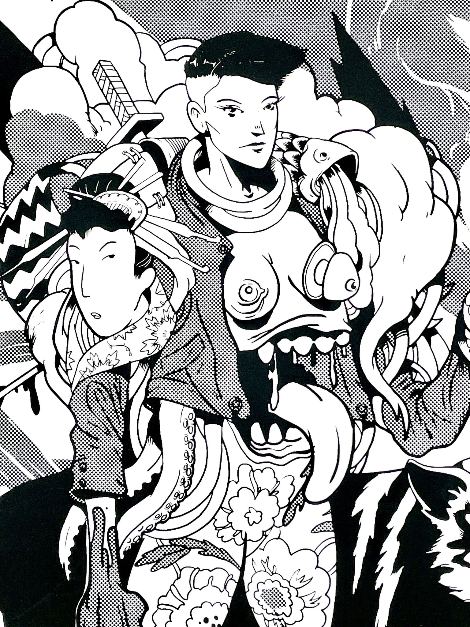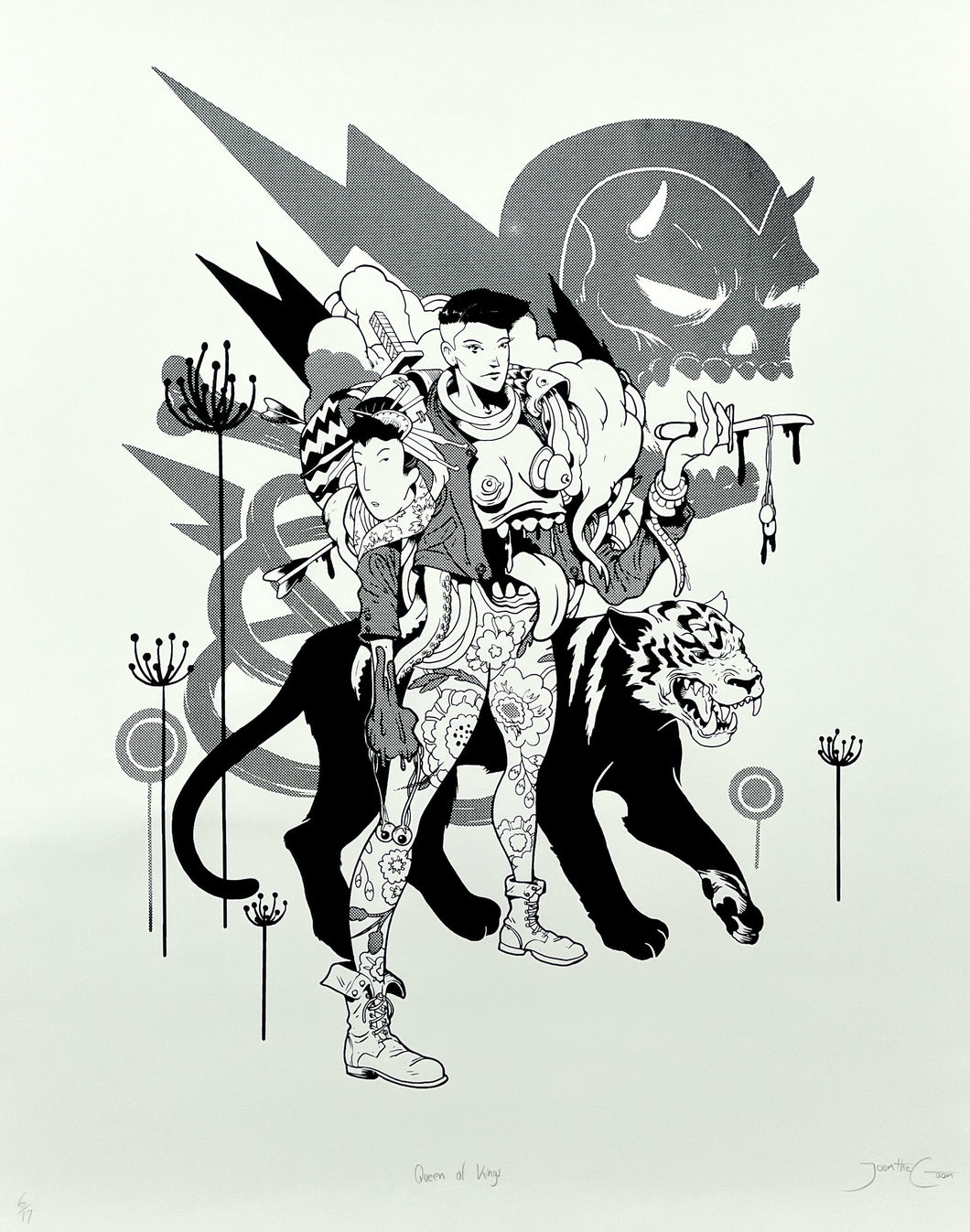 Juan “Joon” Alvarado graduated from Art Center College of Design in 2007. Since then, he has shown his collections at the Museum of Latin American Art, La Luz de Jesus, and was a featured artist (and winner) for Secret Walls and PowWow! Joon’s art reflects his upbringing in Los Angeles, and is heavily influenced by graffiti, animation, Japanese woodblock art, and comic books.