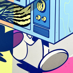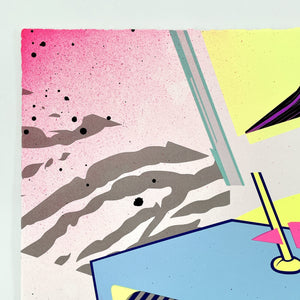 RIOT is a continuation of the technical exploration and advancements pursued in previous editions, pushing to reference Pose's original paintings through the hand-pulled screen printing processes. Printed by POP!NK Editions in POSE's studio, in direct collaboration to ensure a one of a kind edition