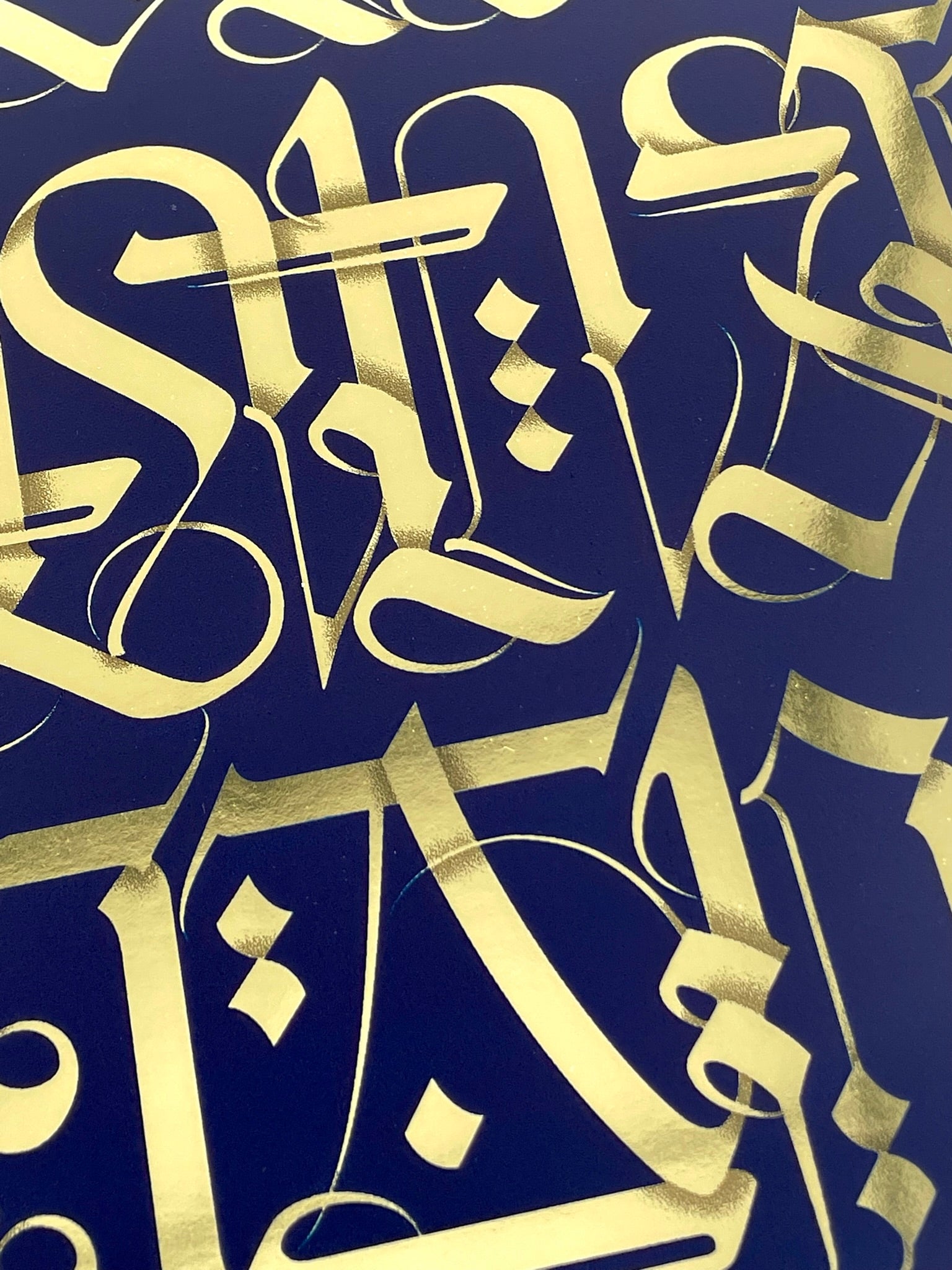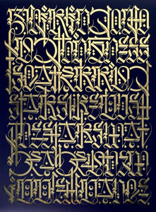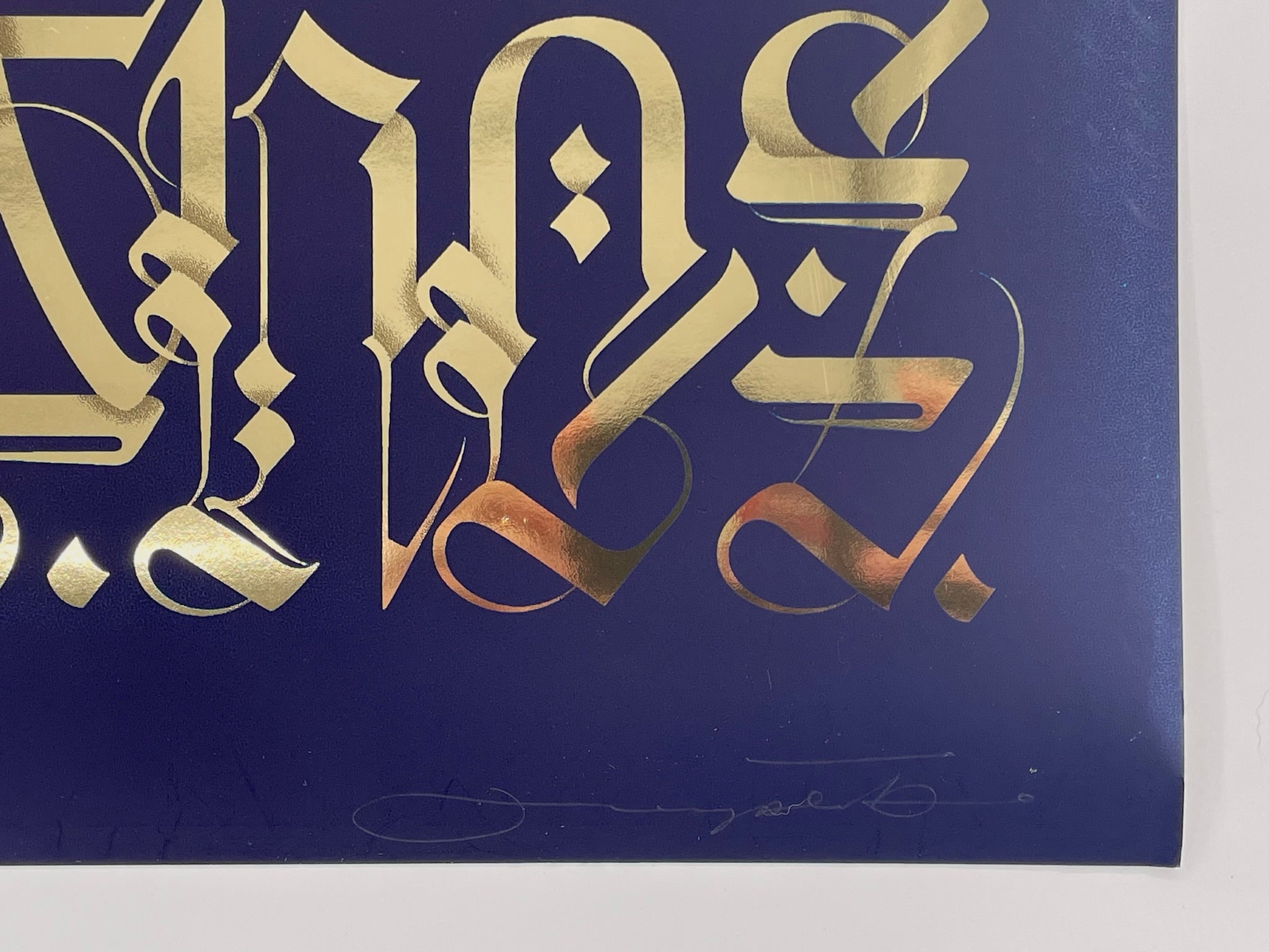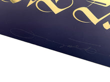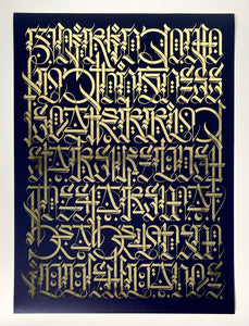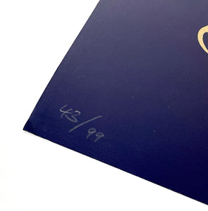 Medium: Midnight blue serigraph print on gold foil archival paper.