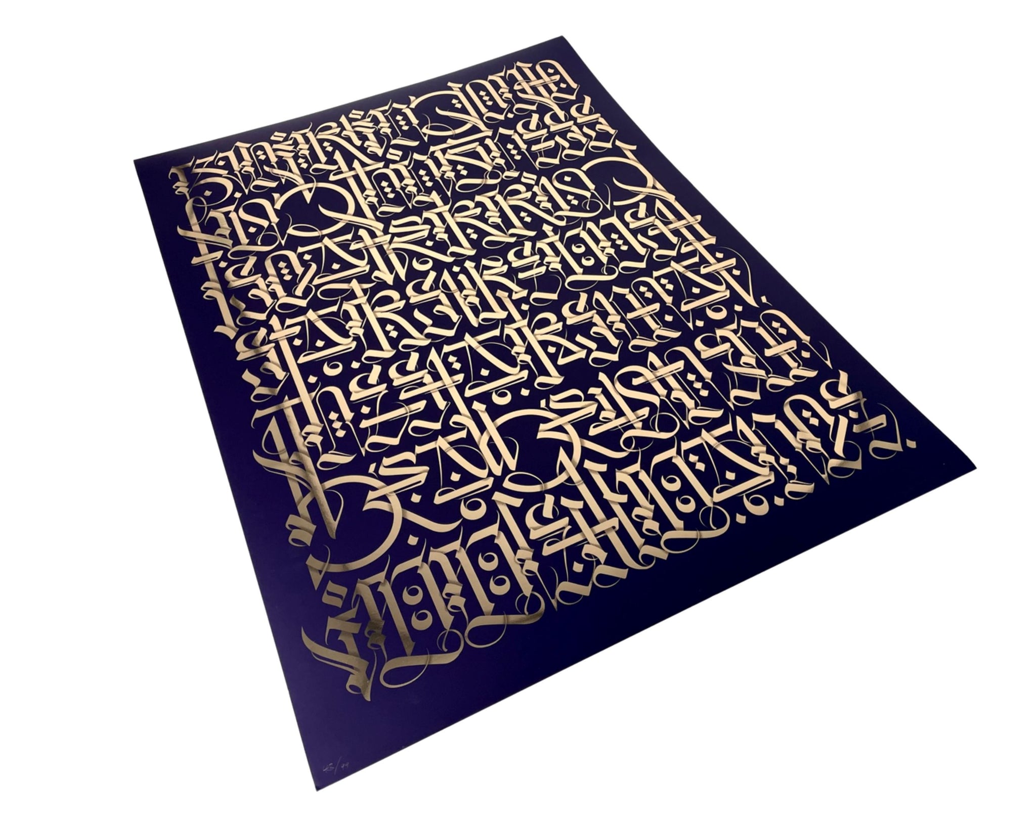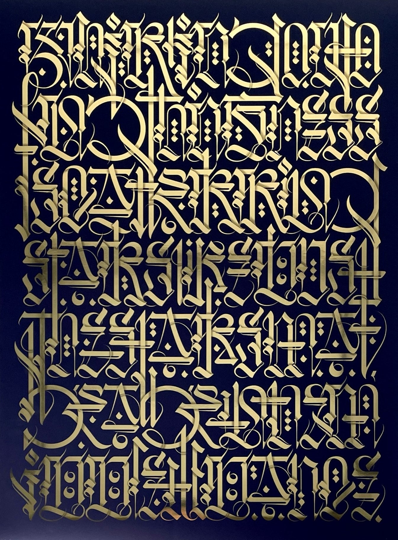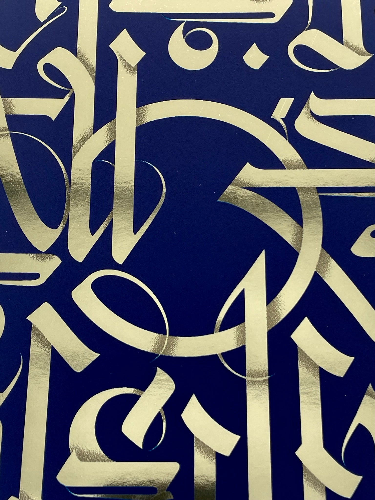 Medium: Midnight blue serigraph print on gold foil archival paper.