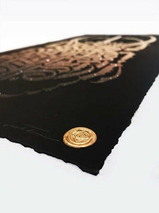 Medium: Sirio 'UltraBlack' 460 gsm w/Deckled Edge. Each print is unique in that the hand sprinkled sand on top shows slight variations on each print.