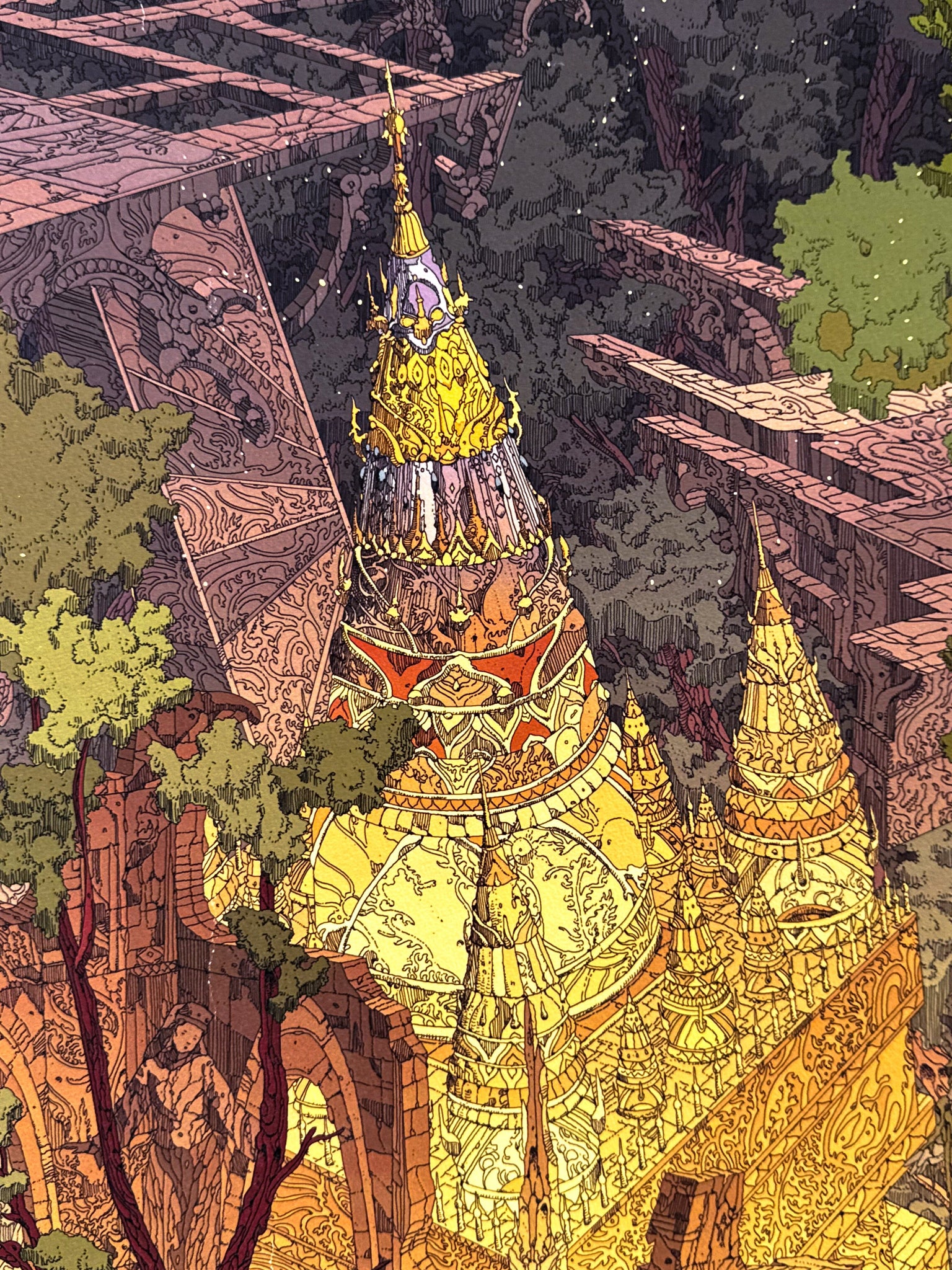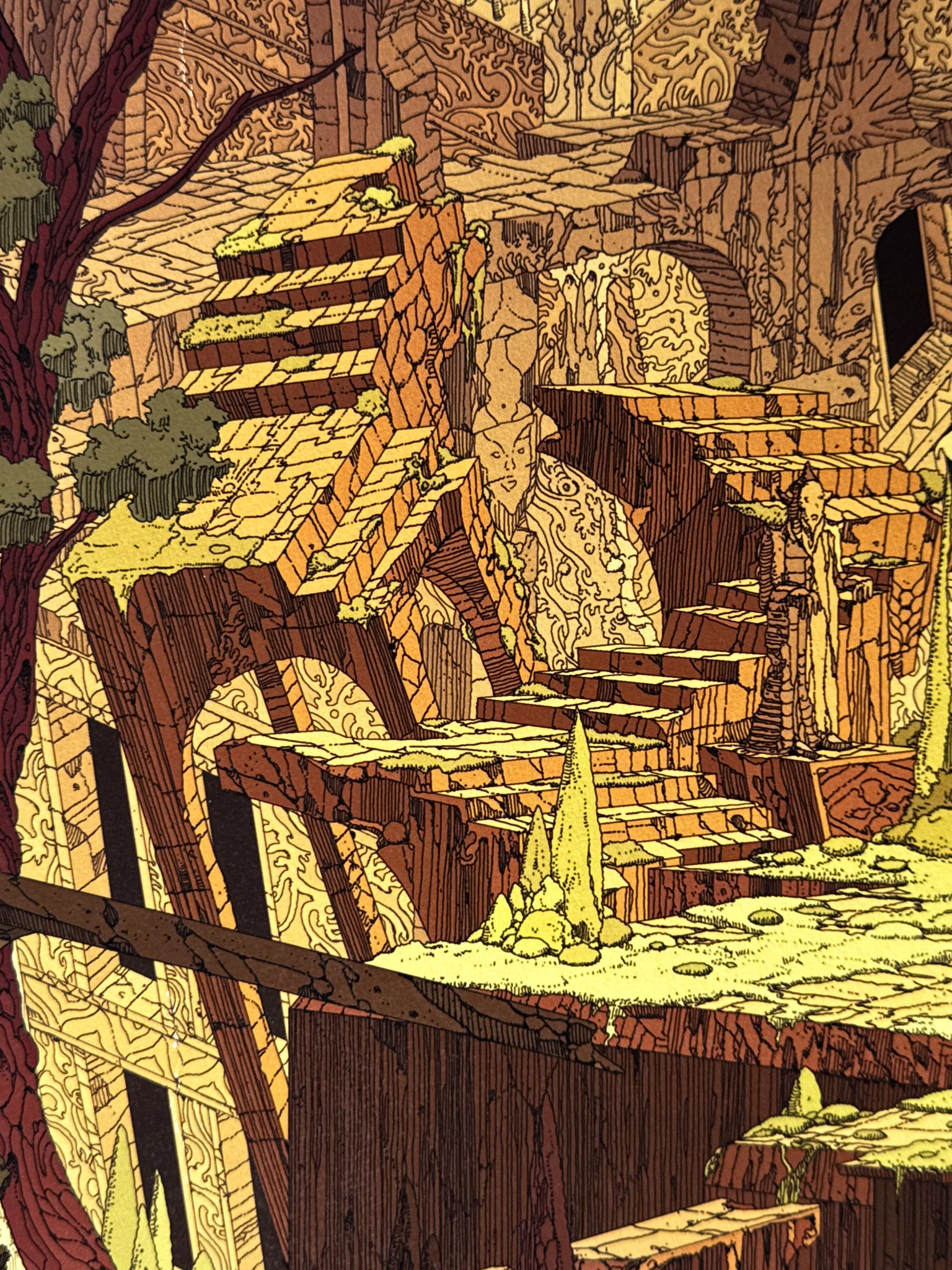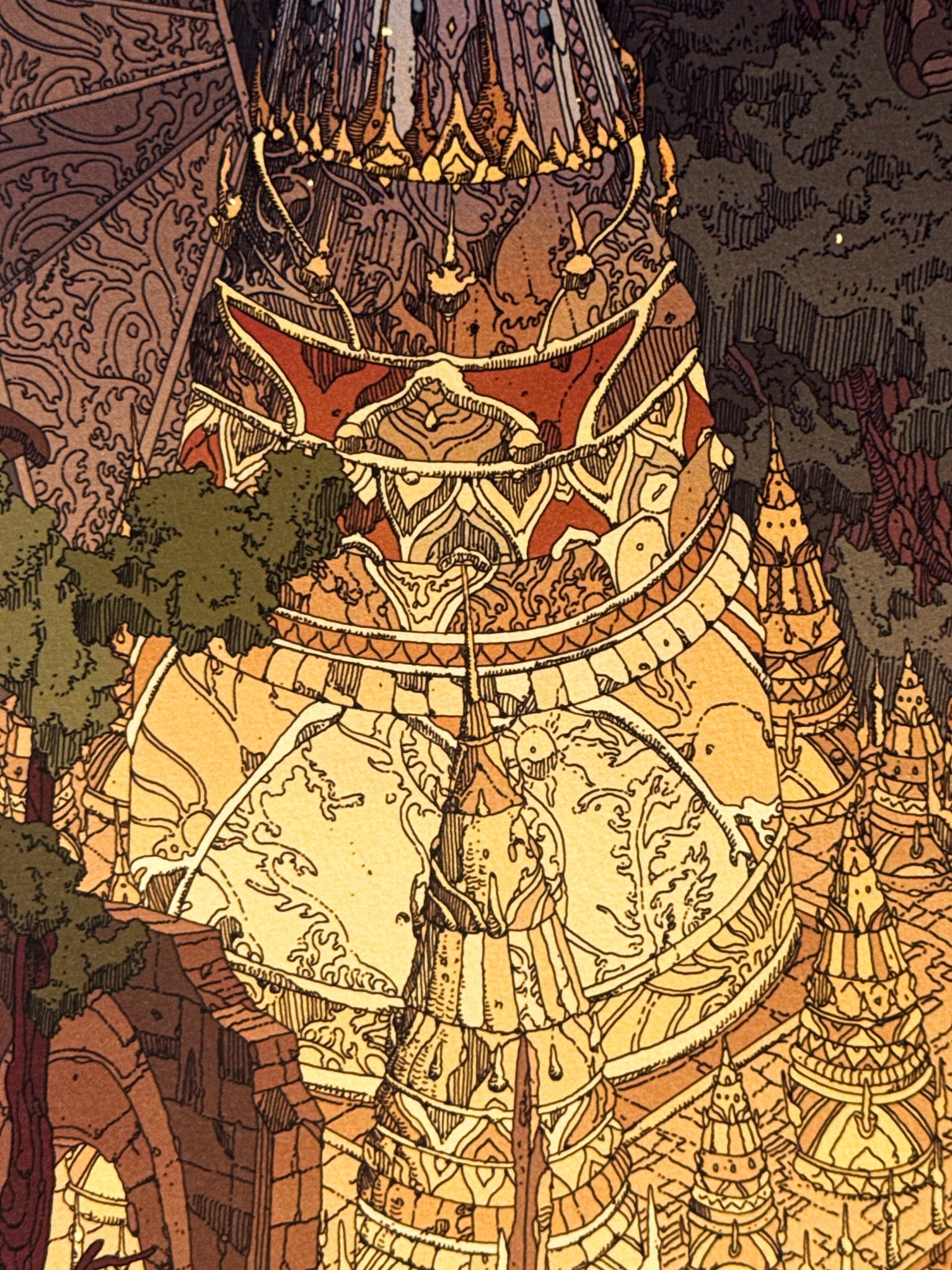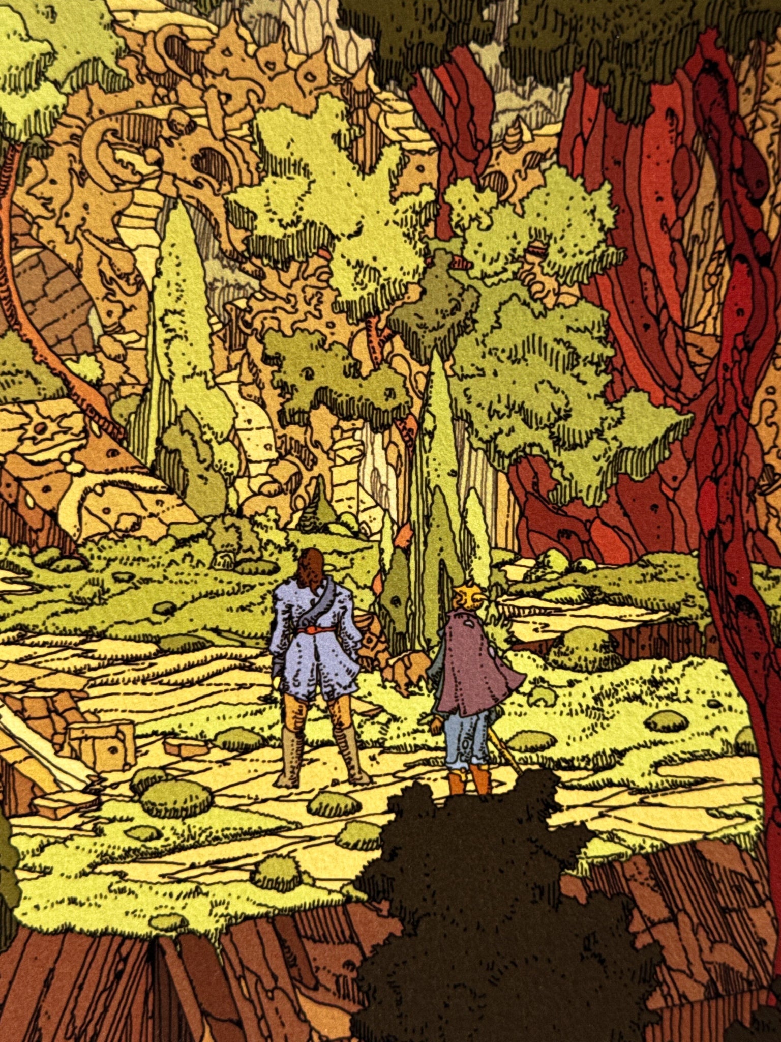 His strongest artistic influences comes from many of the European artists who worked and is still working in the genre of sci-fi and fantasy with a very open mind what that can be.