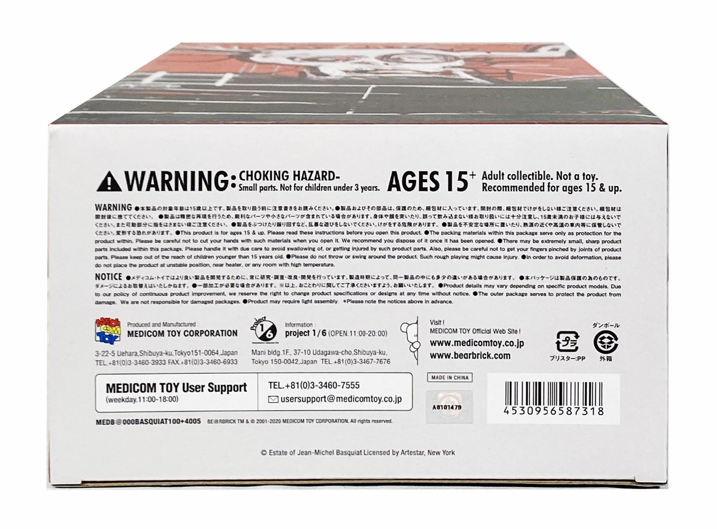 Officially licensed Jean Michel Basquiat figure by Be@rbrick x Medicom Toy. Includes both the 100% and 400% scaled figures.