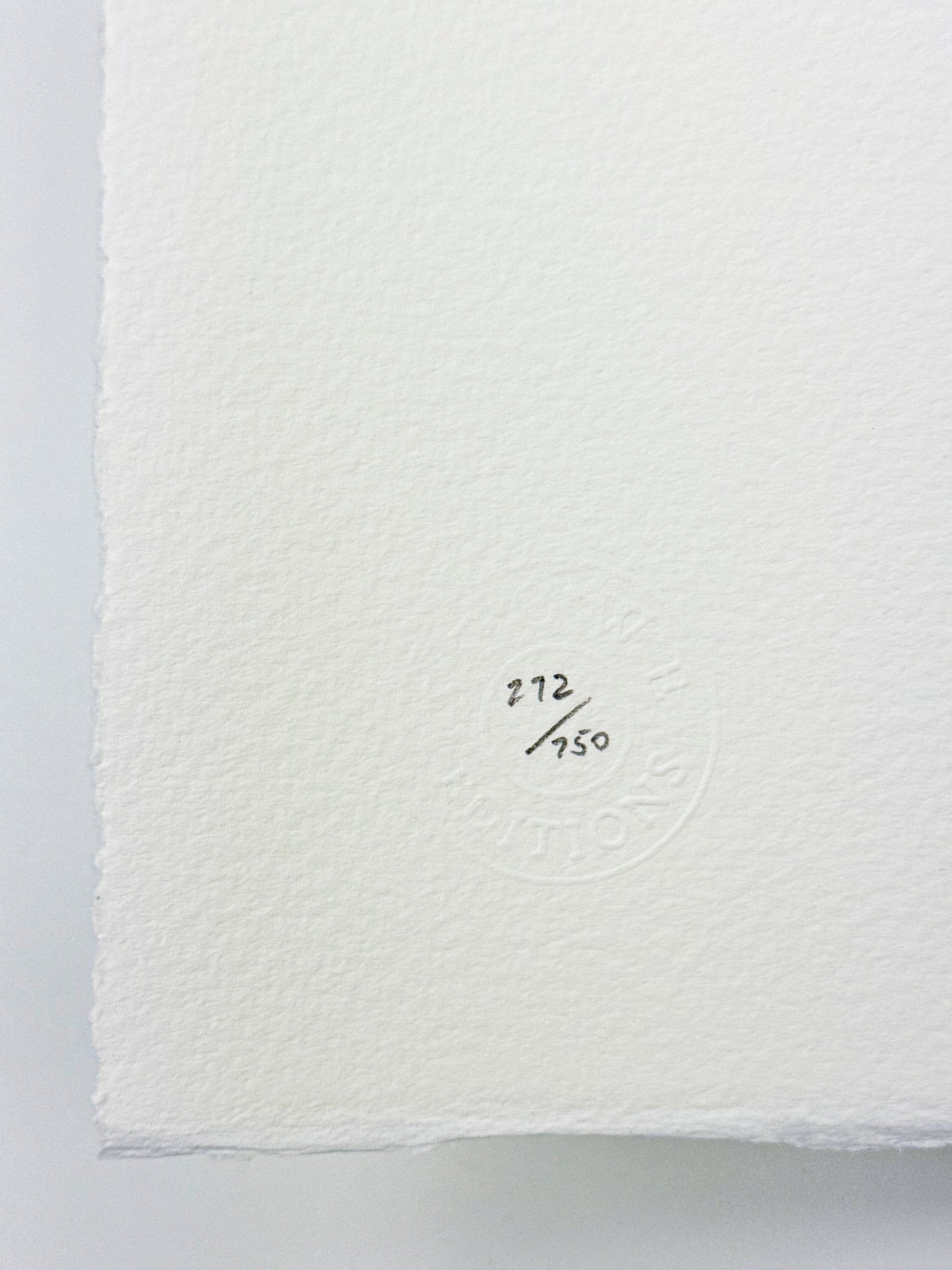 Medium: One layered hand pulled gloss acrylic Screen Print. Printed on JPP textured Somerset 300 gsm with Hand-torn edges