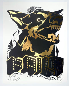 Medium: Offset Print with Gold Foil. The original Faile Dog in a gold/black variant.