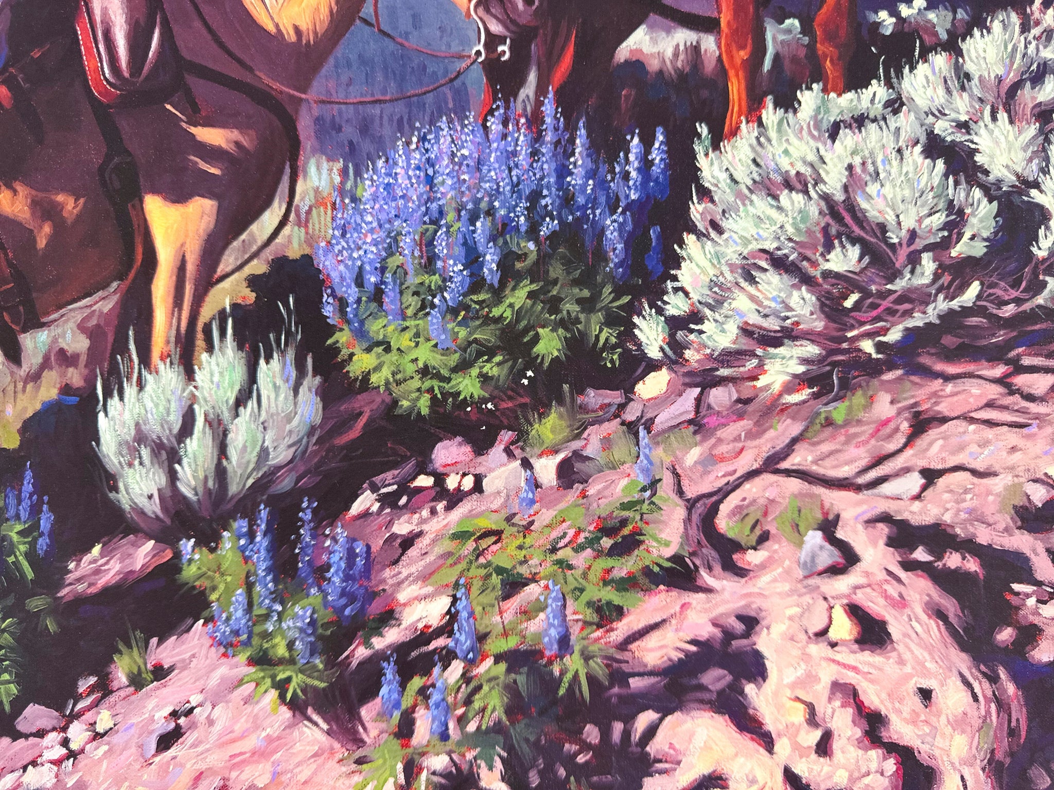 His work brought many new opportunities, including important solo and group shows, and a significant showing at the 2017Night of Artists at the Briscoe Western Art Museum, where he won the Sam Houston award. He also began to expand more artistically: he started to work more in plein air, he spent time on ranches with cowboys and on horseback to acquaint himself more with the Western way of life. He spent time in New Mexico, Arizona and Wyoming and began adding additional figures to his works and new kinds of compositions to his growing arsenal.