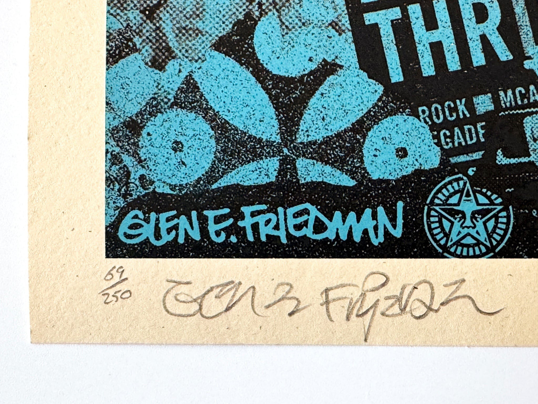 Provenance: Hand-signed by Ad-Rock, Glen E. Friedman, Mike D, and Shepard Fairey. Numbered and dated by Shepard Fairey in pencil. Comes with Verisart digital blockchain certificate of authenticity.