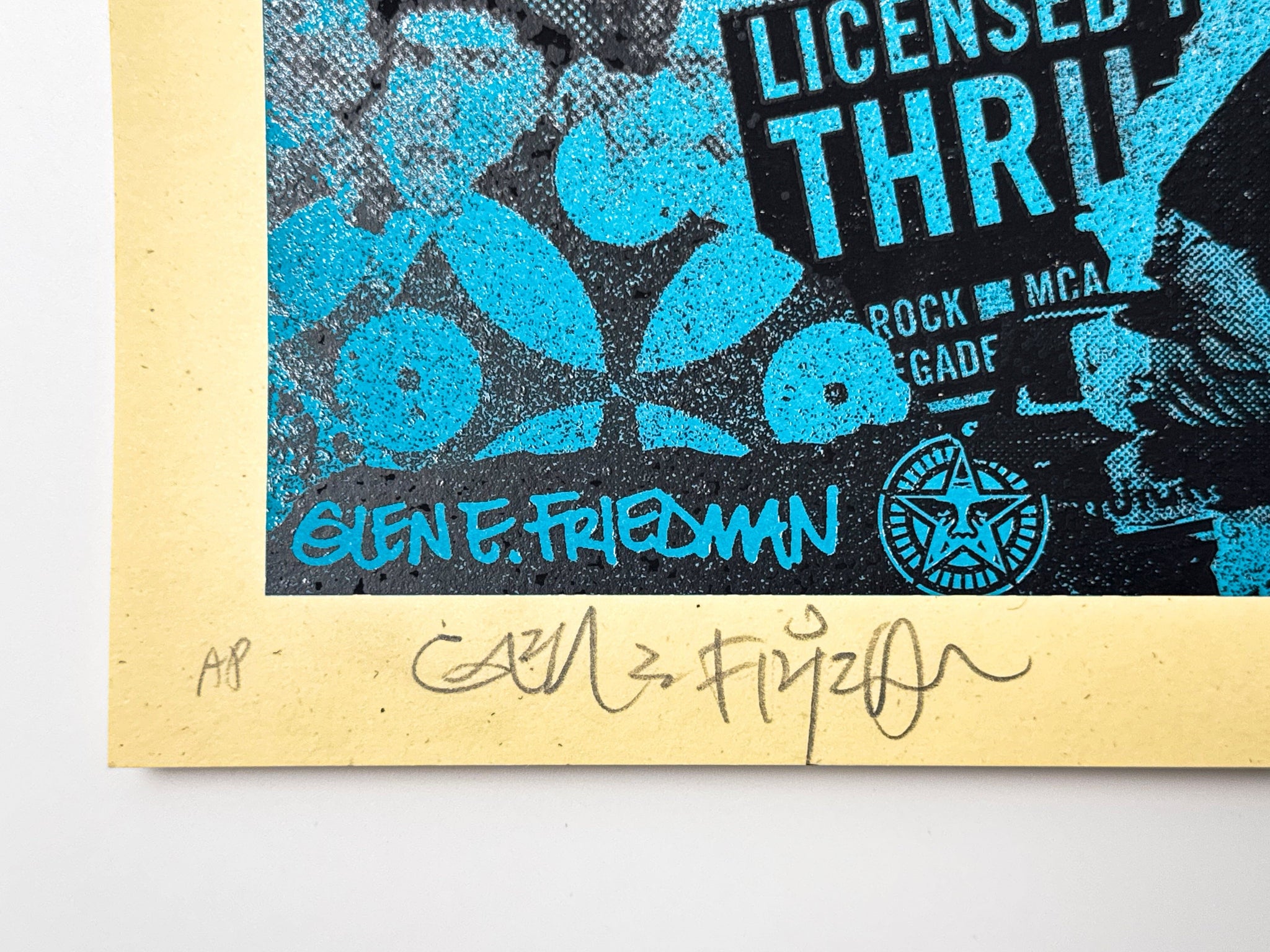Provenance: Hand-signed by Ad-Rock, Glen E. Friedman, Mike D, and Shepard Fairey. Numbered and dated by Shepard Fairey in pencil. Comes with Verisart digital blockchain certificate of authenticity on request.