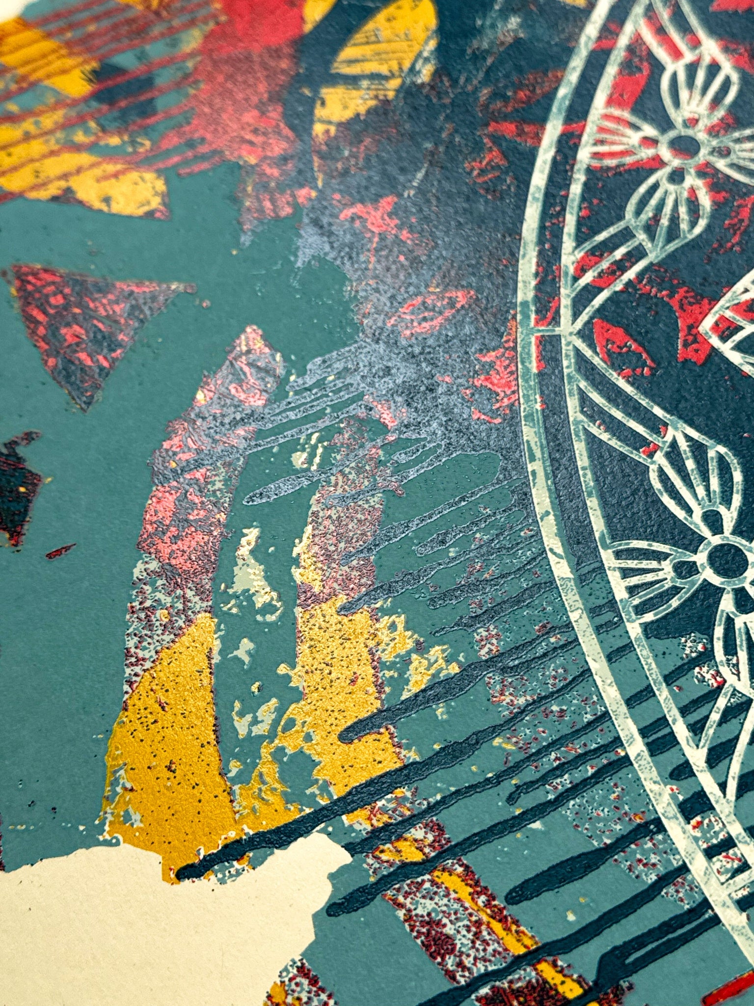 "These two Collage Peace Mandalas are based on fine art pieces I created for my “Swan Song” show at Galerie Itinerrance in Paris. Peace has been an important theme in my work for many years and I’m always looking for new ways to address peace visually. These mandalas have a lace-like fragility laid over chaotic collage backgrounds. The contrast is meant to emphasize the delicate and precarious nature of peace that requires thoughtful care to maintain. We all need reminders to be vigilant in pursuing peace, so here’s one of my contributions."