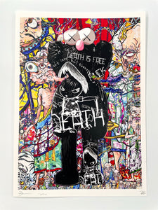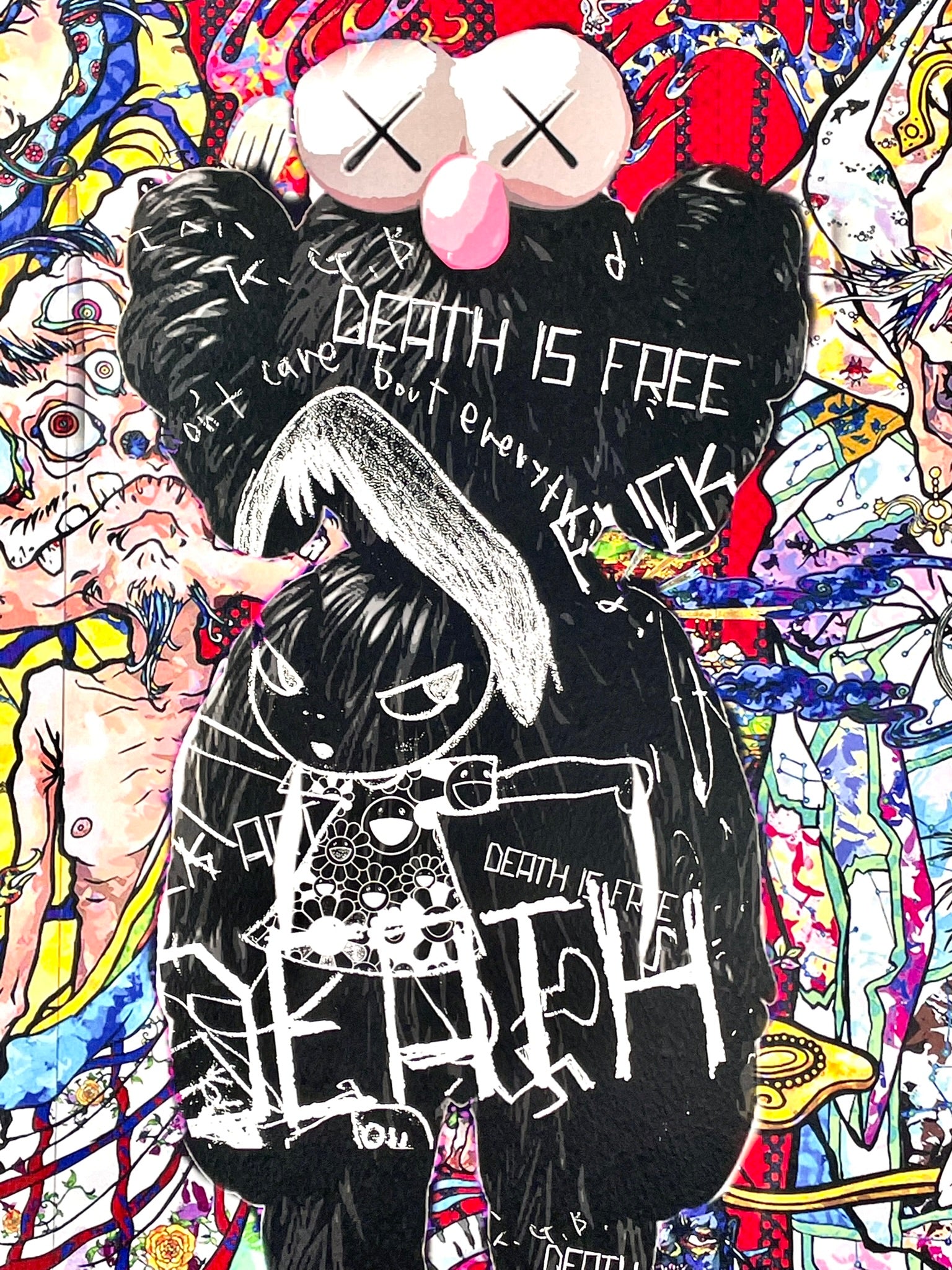 DEATH is a street artist from New York City. Growing up in New York City, being expose to many different cultures and perspectives often causes her think and questions everything that she sees on the street. This experience later has a major influence on deciding the artist name and aim.