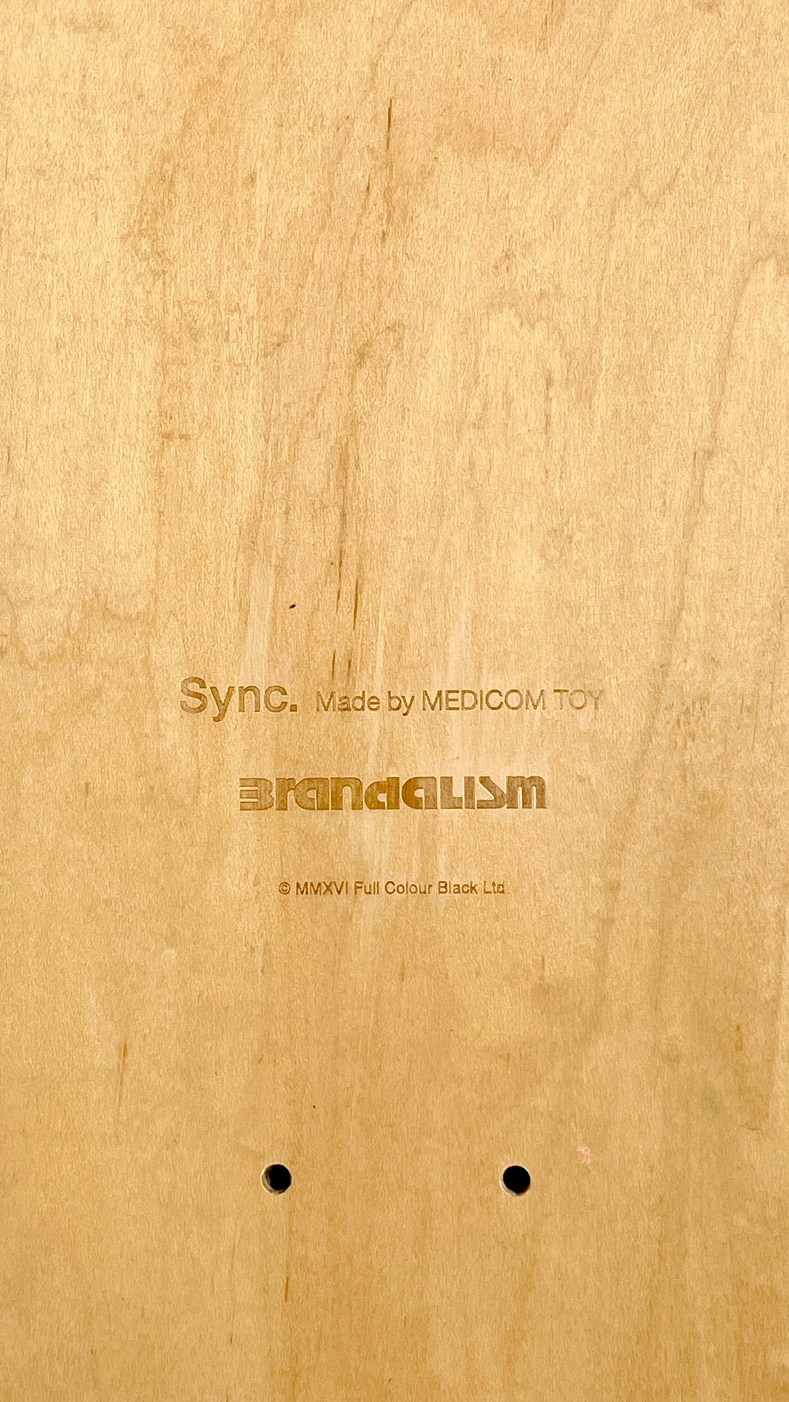 Limited edition Banksy x Brandalism x Medicom wooden skate deck/art piece featuring one of Banksy's most iconic designs.