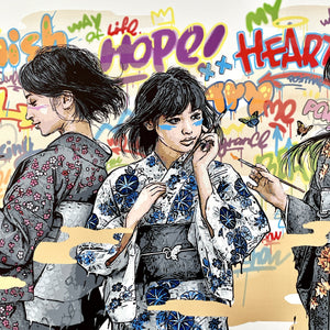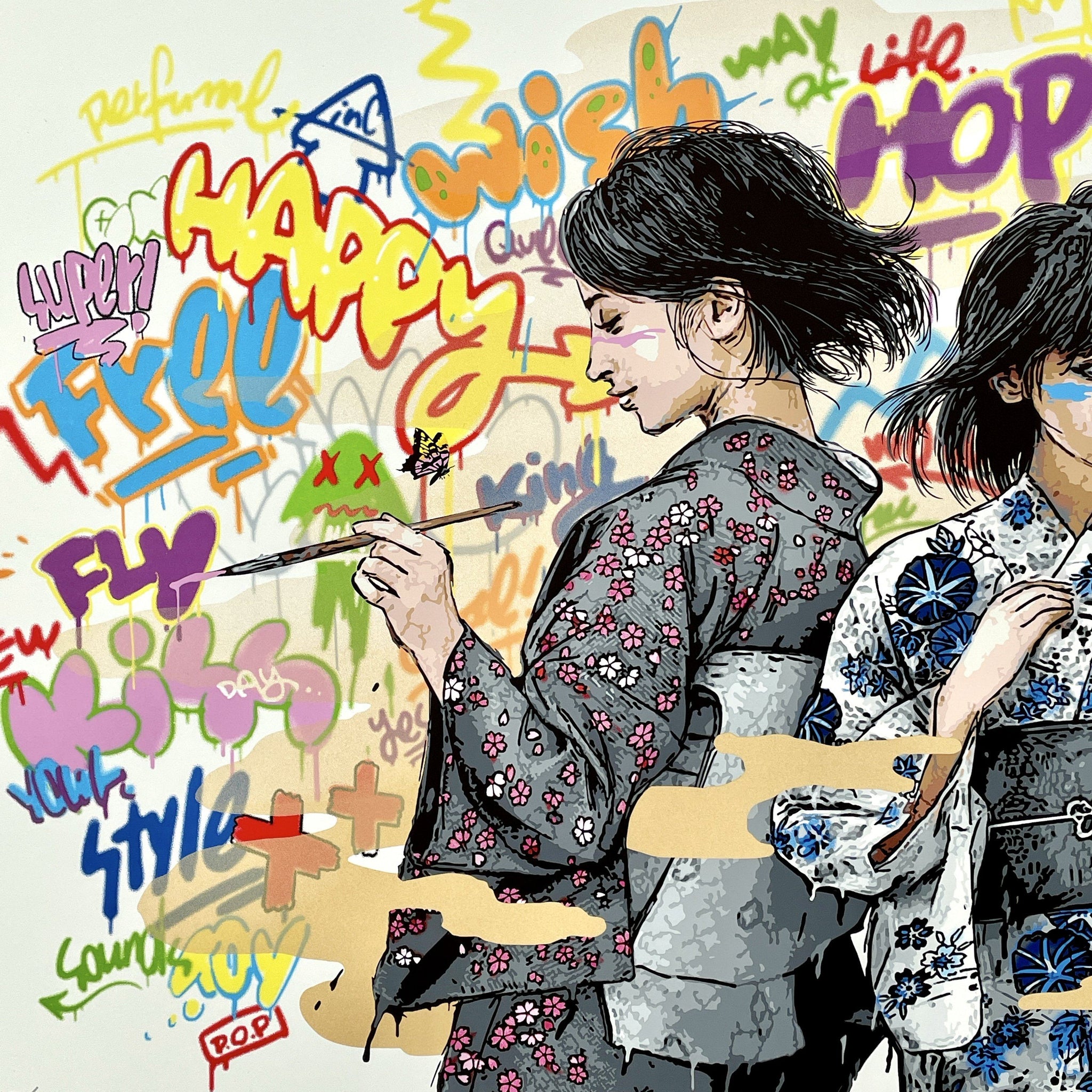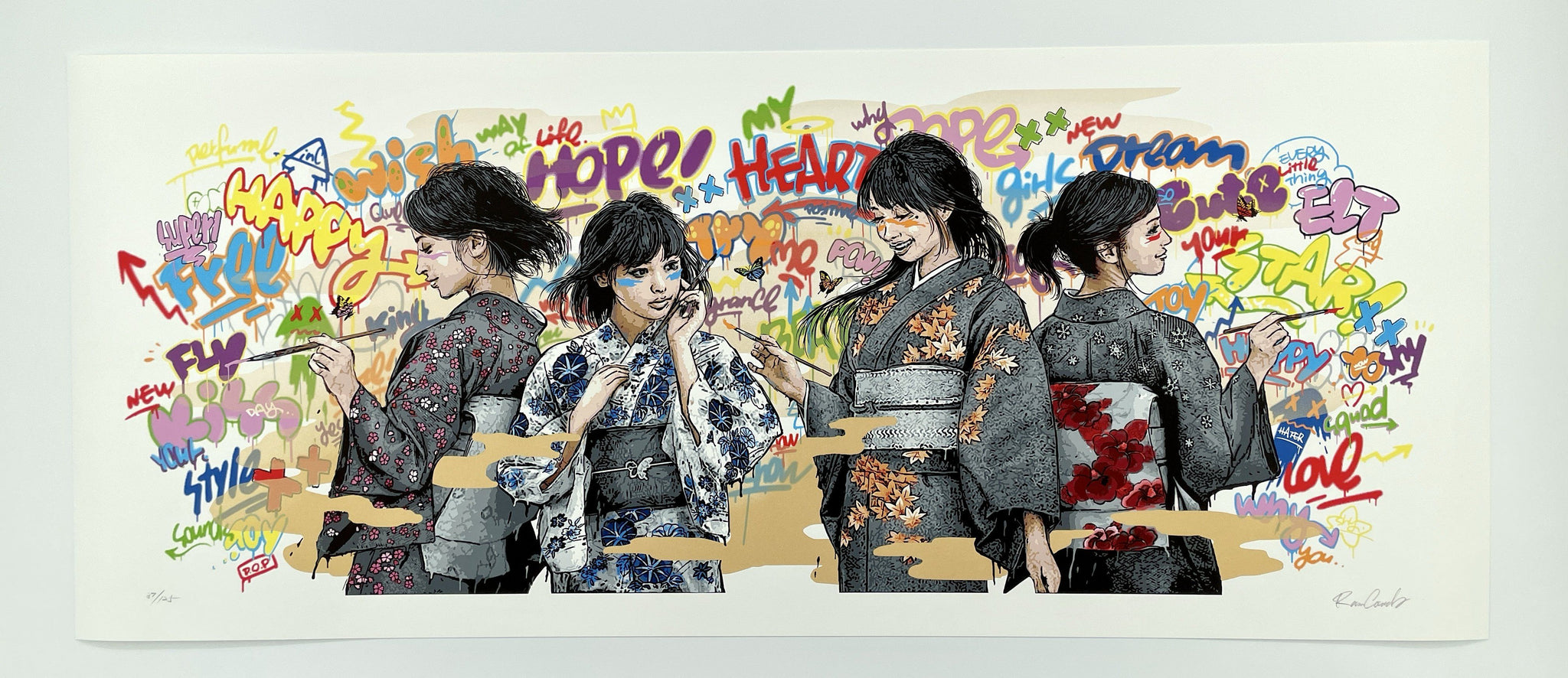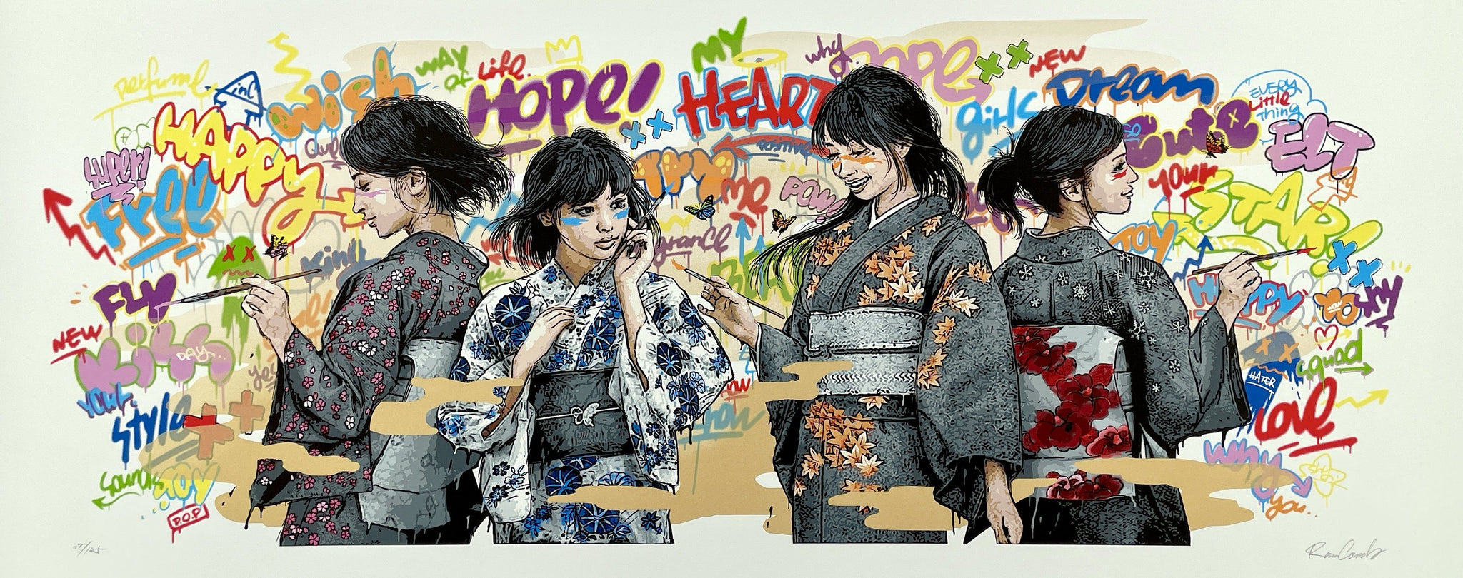 In 2011, now dubbed “RoamCouch”, he began his transition into a full-time artist. He produces his exquisite and romantic works of art by using over fifty different layers of hand cut stencil, and has been showcased at solo and group exhibitions both within and outside Japan. His detailed and rich stencil paintings redefined the stereotypical image of stencil art. In 2014, he opened his first solo show titled “A Beautiful Life” in New York and achieved an amazing feat of selling out the entire collection.