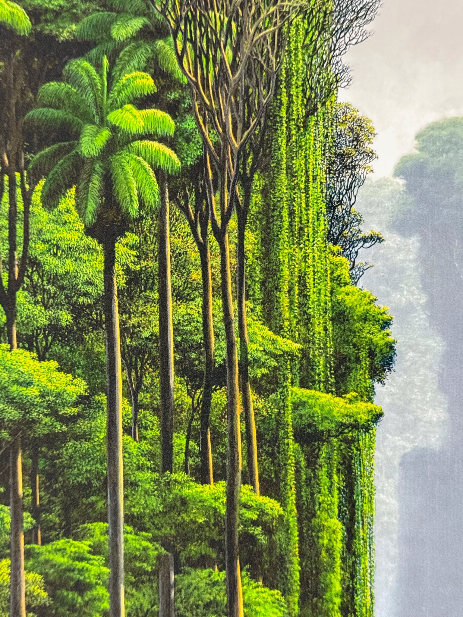 Sánchez’s symbolic landscapes have made him one of the most important living Cuban artists. Part of Volumen Uno in the 80s, a movement that resisted the heavily censored Cuban art of the time, he has since received international recognition, with auction prices in excess of $600,000 USD. Inspired by the Romantics, Sánchez paints the wilderness of his homeland, as well as vast panoramic views of garbage dumps. The works are incredibly detailed with a lush tropical palette, encompassing the physical wonder of the natural world, it’s immense spiritual power, and humankind's tendency to destroy it. Small human figures set against waterfalls, lagoons and palm trees engage with humankind's insignificance, search for inner peace, and broader environmental issues. Steeped in allegory, Sánchez’s art reinterprets traditional modes of painting to create an uncanny paradise that is at once hopeful and threatening.