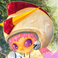 At a glance, Ryo’s paintings are charmingly whimsical; pop surrealist artworks skillfully done in an illustrative style reminiscent of the world of anime. The visual veneer of his artworks camouflages the fact the artist broaches subjects that are in contrast quite contemporary.