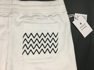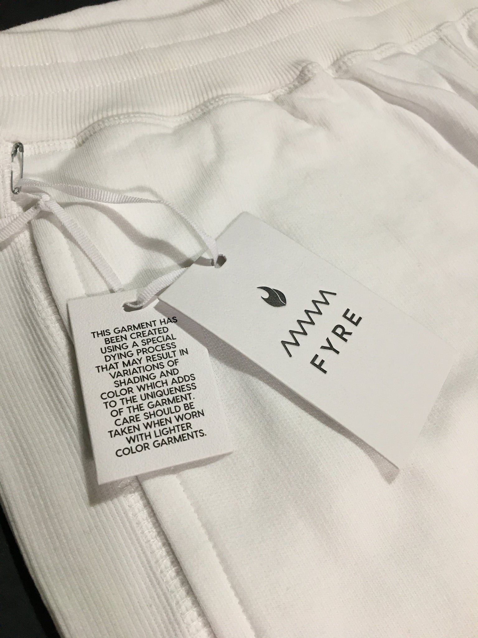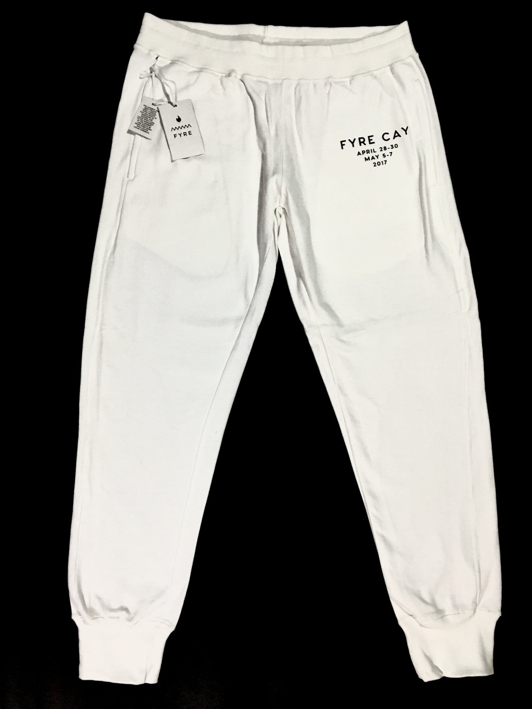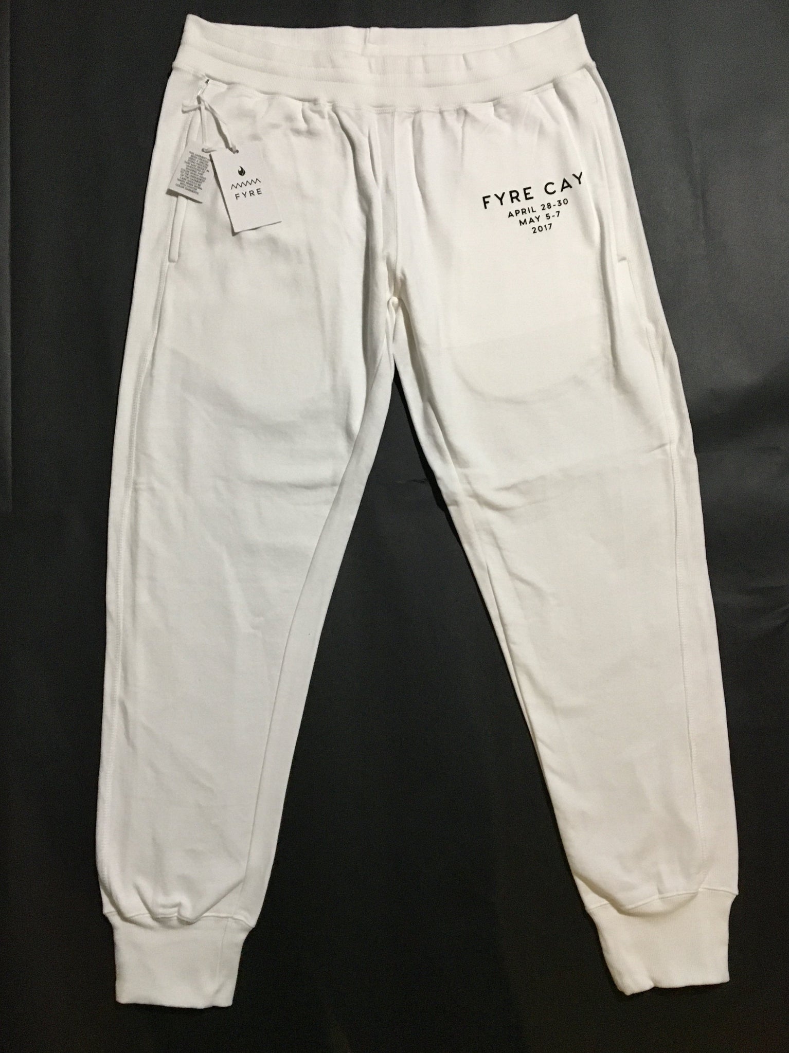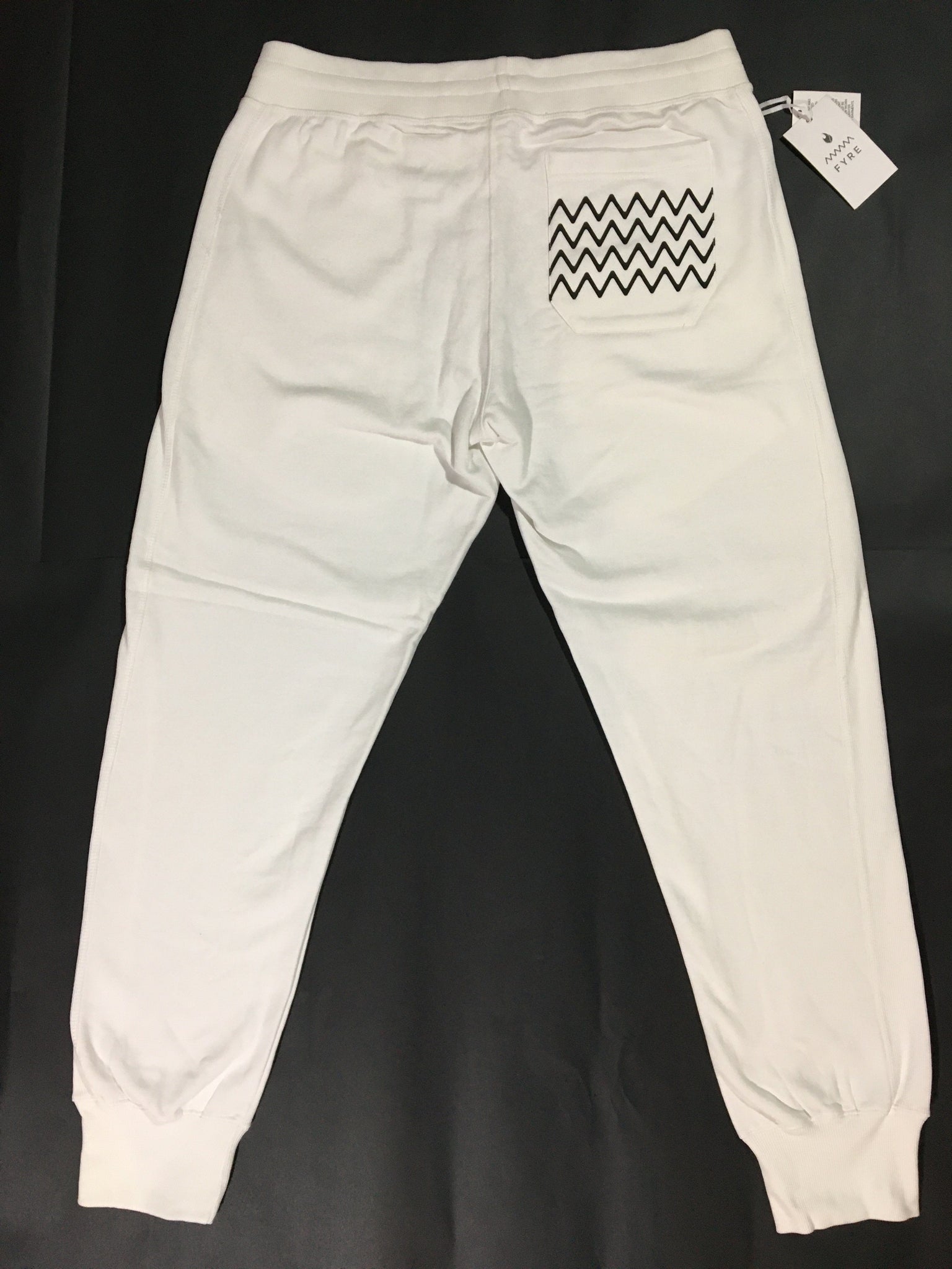Medium: White, high-quality joggers/sweatpants. 100% Cotton.