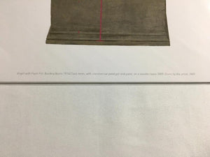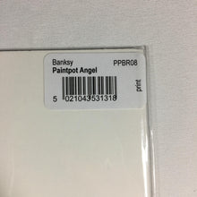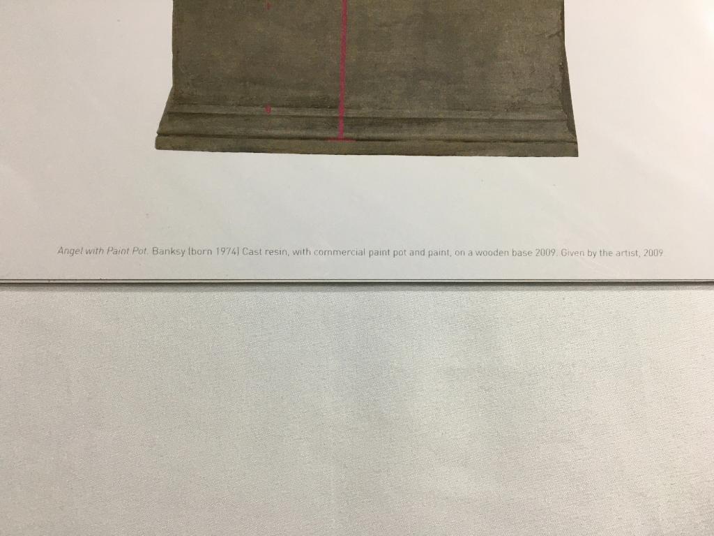 The wording at the bottom of the print reads: "Angel with Paint Pot. Banksy (born 1974) Cast resin, with commercial paint pot and paint, on a wooden base 2009. Given by the artist, 2009"