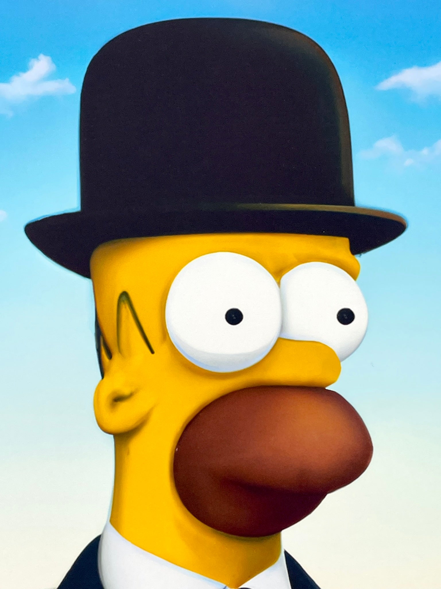 Based on the style of famous Belgian surrealist artist René Magritte, Ripoff presents his first piece in a series of "what if's" centered around modern cultural references painted in the style of famous contemporary and classical artists.