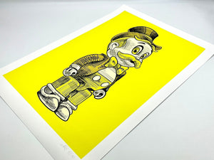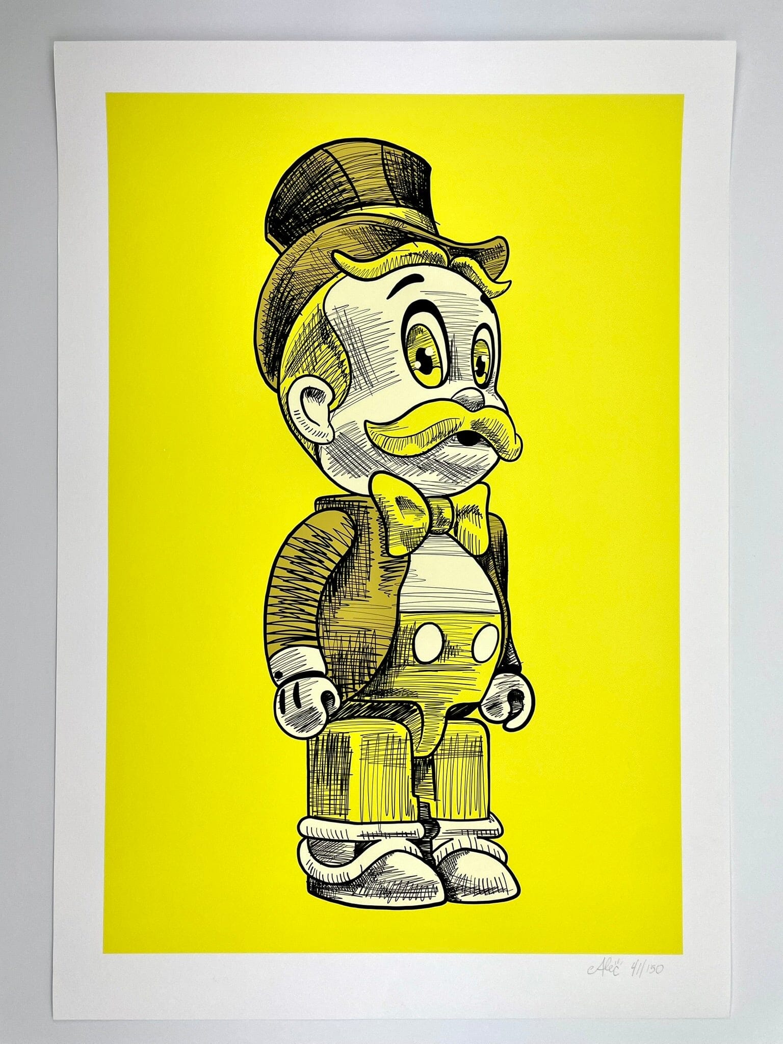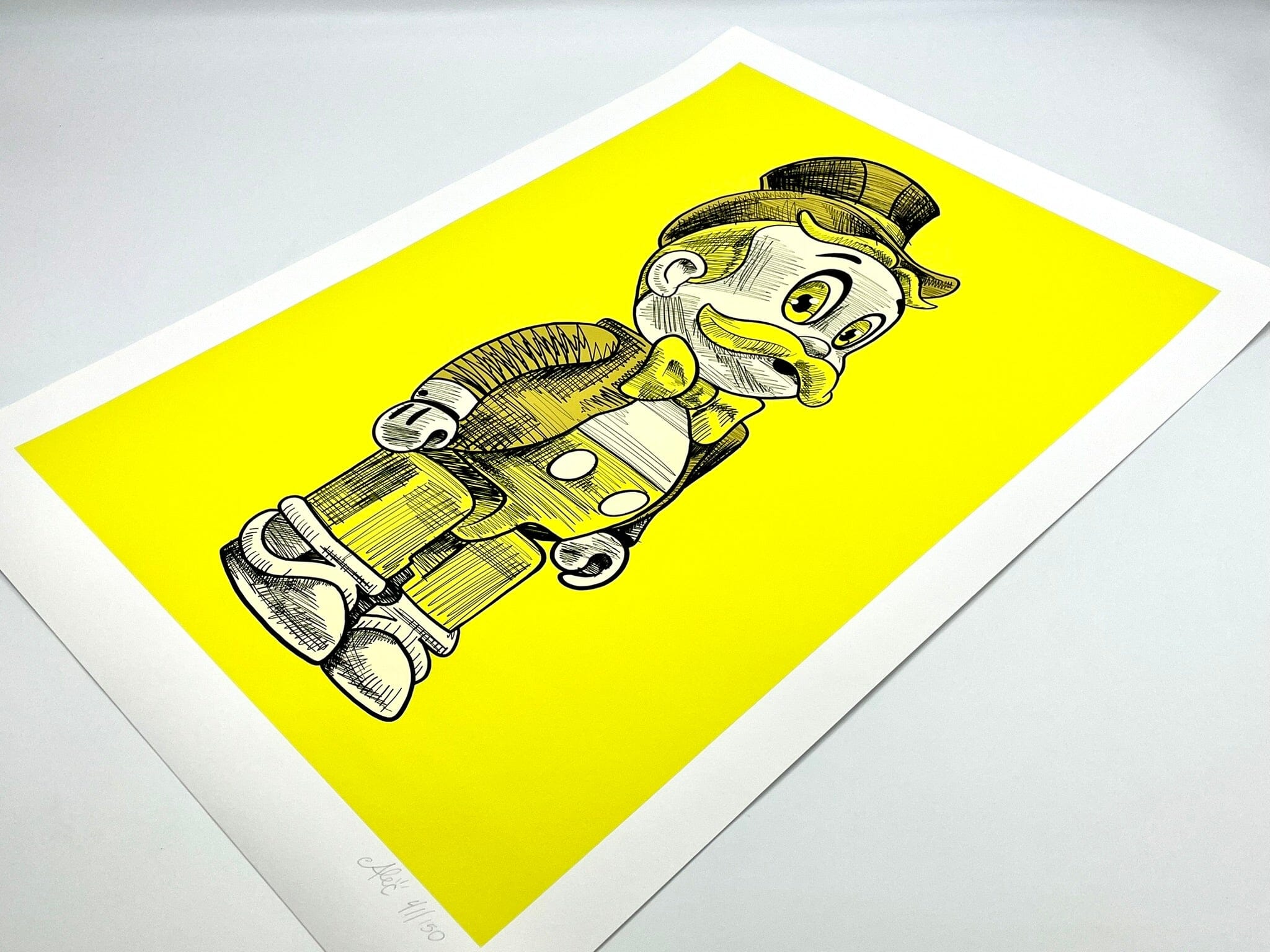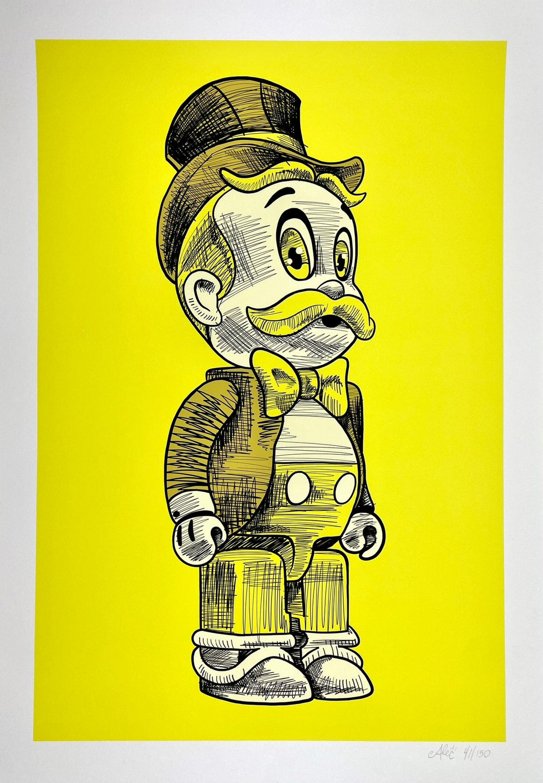 “Alec Monopoly” is the alias of an unidentified graffiti artist, originally from New York City. The artist has worked in the urban environments of New York, Miami, Los Angeles, Europe and throughout Asia using varied materials (including stencils, spray paint, epoxies, varnishes and newspapers) to subversively depict various iconic pop culture characters. Alec Monopoly cites his artistic origins as learning from his mother, an artist, eventually abandoning traditionally academically driven art classes to pursue an individual methodology. Alec and his work have been covered by The Wall Street Journal, London Times, New York Post, Rolling Stone, Playboy Magazine, Billboard Magazine, Vibe, The Huffington Post, Complex Magazine, Juxtapoz and The Dirt Floor in addition to a myriad of art + lifestyle blogs. Paramount Pictures commissioned Alec Monopoly to design the logo for their production company, INSURGE.