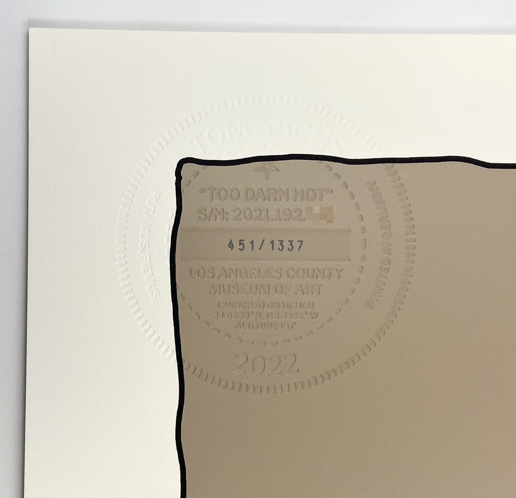 To benefit the Los Angeles County Museum of Art, silkscreen print Too Darn Hot combines a landmark moment for Tom Sachs’ practice with his continued investigations of the past, present and future of authentication.